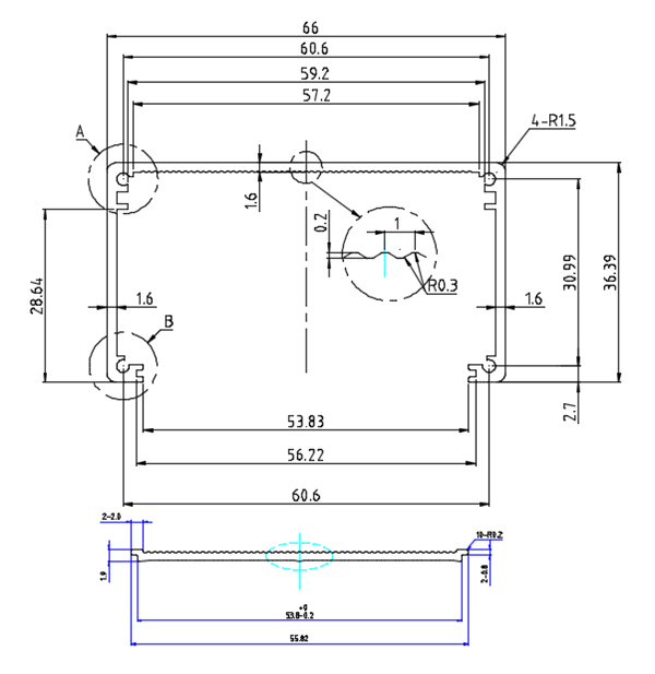 • 鋁外殼定制加工BY-002 規(guī)格:66X36